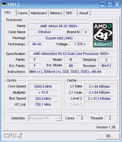 | Процессор (ядро) | AMD Athlon 64 X2 (Windsor) |