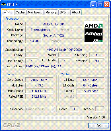 | Процессор (ядро) | AMD Athlon XP (Thoroughbred) |