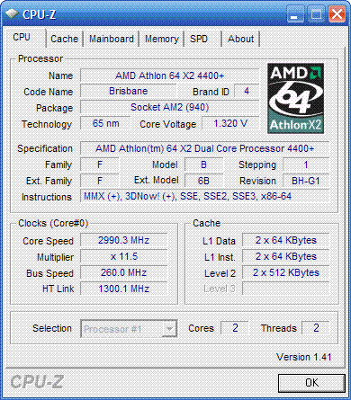 Результат разгона AMD Athlon 64 X2 (Brisbane)