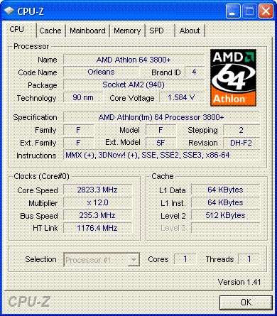 Результат разгона AMD Athlon 64 (Orleans)