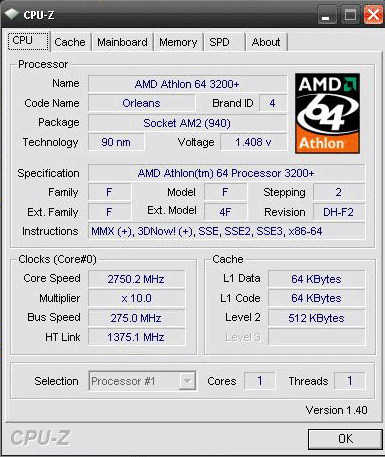 Результат разгона AMD Athlon 64 (Orleans)