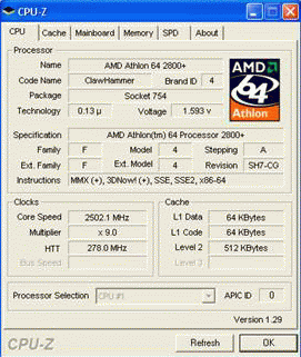 Результат разгона AMD Athlon 64 (ClawHammer)
