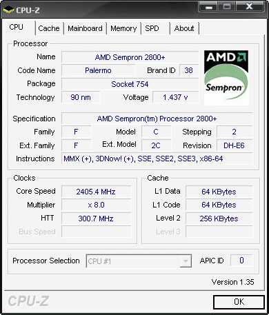 | Процессор (ядро) | AMD Sempron (Palermo) |