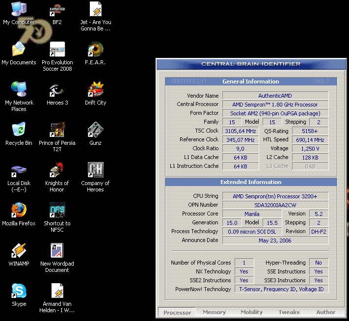 | Процессор (ядро) | AMD Sempron (Manila) |