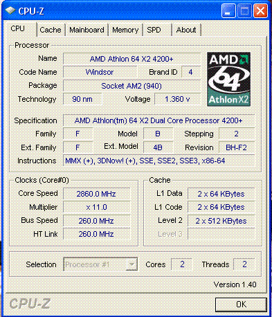 | Процессор (ядро) | AMD Athlon 64 X2 (Windsor) |