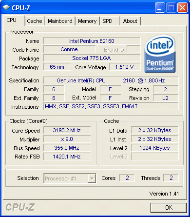 | Процессор (ядро) | Intel Pentium Dual-Core (Conroe-1M) |