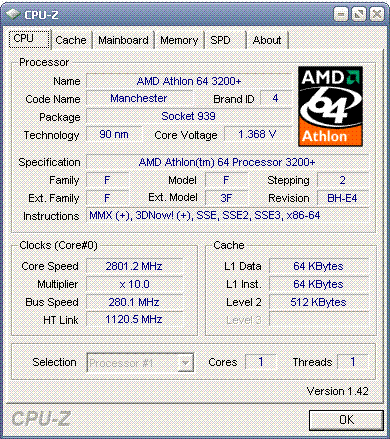 Результат разгона AMD Athlon 64 (Venice)