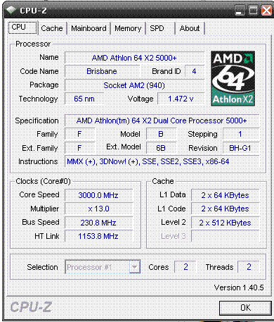 Результат разгона AMD Athlon 64 X2 (Brisbane)
