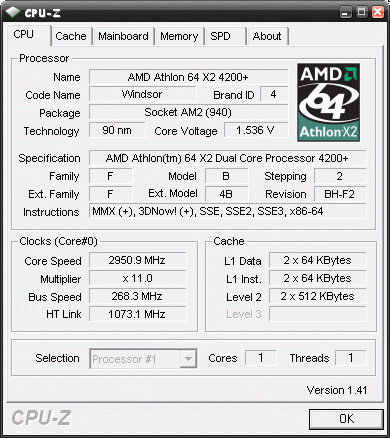 Результат разгона AMD Athlon 64 X2 (Windsor)