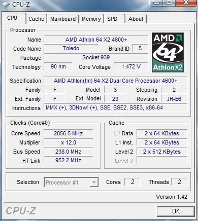 | Процессор (ядро) | AMD Athlon 64 X2 (Toledo) |