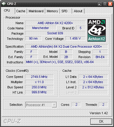 Результат разгона AMD Athlon 64 X2 (Manchester)
