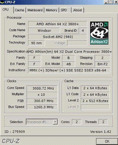 | Процессор (ядро) | AMD Athlon 64 X2 (Windsor) |