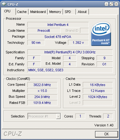 Результат разгона Intel Pentium 4 (Prescott)