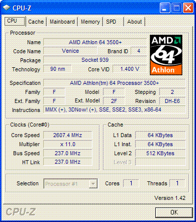 | Процессор (ядро) | AMD Athlon 64 (Venice) |