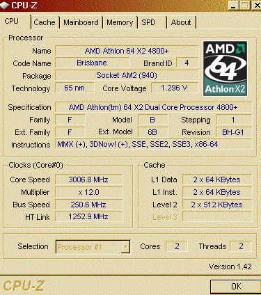 Результат разгона AMD Athlon 64 X2 (Brisbane)