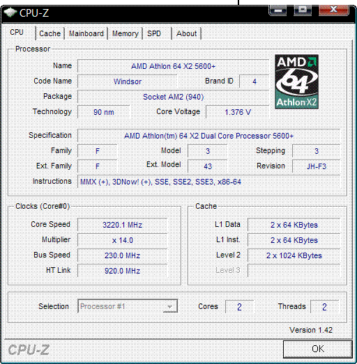 | Процессор (ядро) | AMD Athlon 64 X2 (Windsor) |