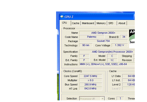 | Процессор (ядро) | AMD Sempron (Palermo) |