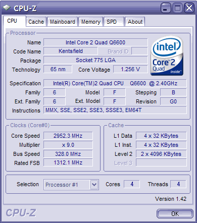 Результат разгона Intel Core 2 Quad (Kentsfield)