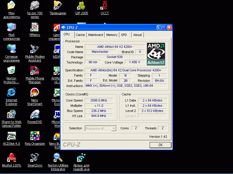 | Процессор (ядро) | AMD Athlon 64 X2 (Manchester) |