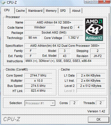 | Процессор (ядро) | AMD Athlon 64 X2 (Windsor) |