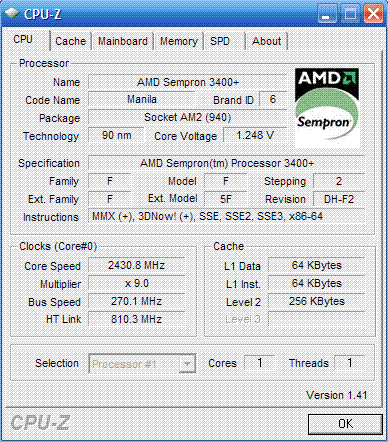 Результат разгона AMD Sempron (Manila)