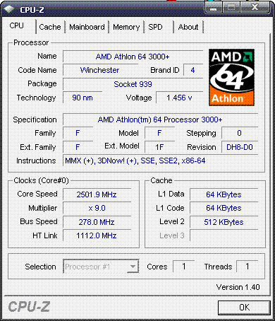| Процессор (ядро) | AMD Athlon 64 (Winchester) |
