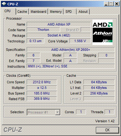 | Процессор (ядро) | AMD Athlon XP (Thorton) |