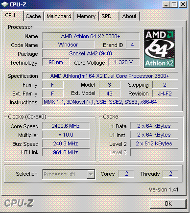 | Процессор (ядро) | AMD Athlon 64 X2 (Windsor) |