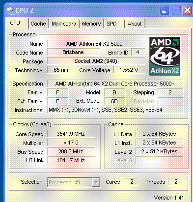| Процессор (ядро) | AMD Athlon 64 X2 (Brisbane) |