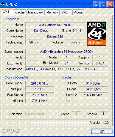 | Процессор (ядро) | AMD Athlon 64 (San Diego) |
