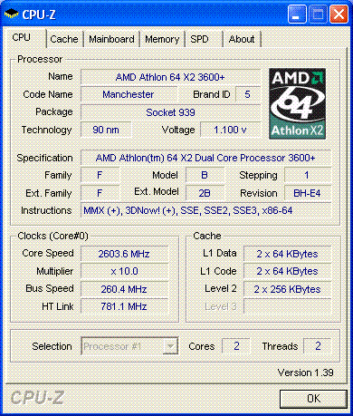 Результат разгона AMD Athlon 64 X2 (Manchester)