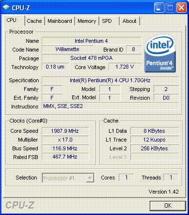 | Процессор (ядро) | Intel Pentium 4 (Willamette) |