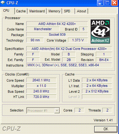 Результат разгона AMD Athlon 64 X2 (Manchester)