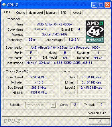 | Процессор (ядро) | AMD Athlon X2 (Brisbane) |