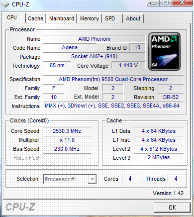 | Процессор (ядро) | AMD Phenom X4 (Agena) |