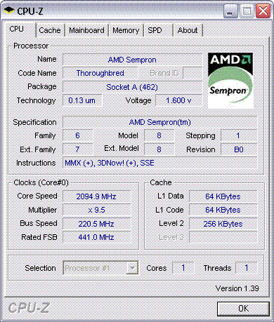 | Процессор (ядро) | AMD Sempron (Thoroughbred) |