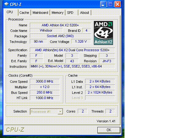 | Процессор (ядро) | AMD Athlon 64 X2 (Windsor) |