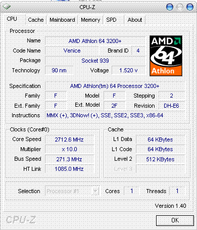 | Процессор (ядро) | AMD Athlon 64 (Venice) |