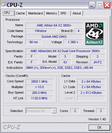| Процессор (ядро) | AMD Athlon 64 X2 (Windsor) |