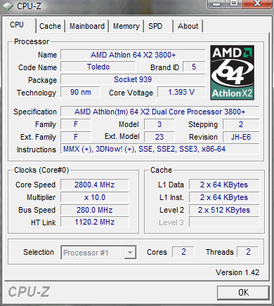 | Процессор (ядро) | AMD Athlon 64 X2 (Toledo) |