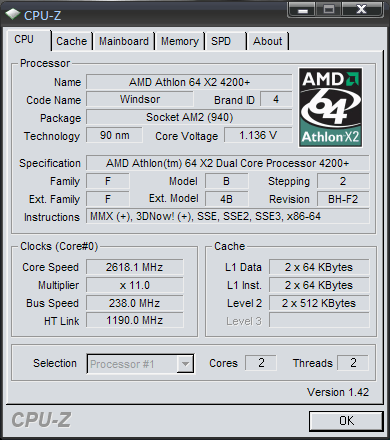 | Процессор (ядро) | AMD Athlon 64 X2 (Windsor) |