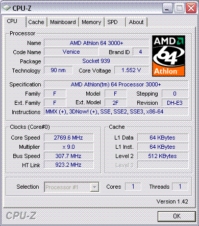 Результат разгона AMD Athlon 64 (Venice)