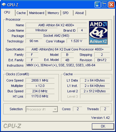 Результат разгона AMD Athlon 64 X2 (Windsor)