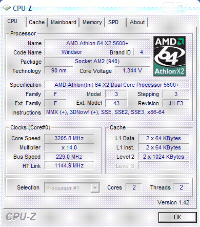 | Процессор (ядро) | AMD Athlon 64 X2 (Windsor) |