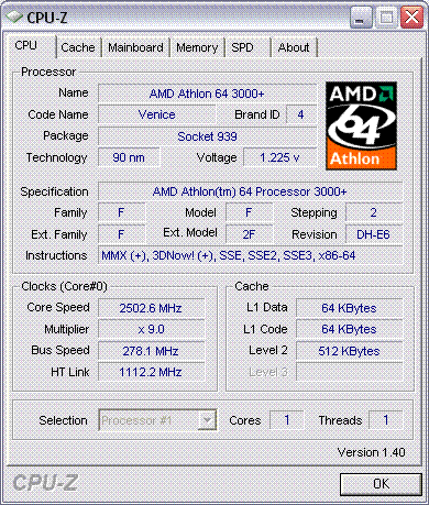 | Процессор (ядро) | AMD Athlon 64 (Venice) |