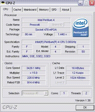 | Процессор (ядро) | Intel Pentium 4 (Prescott) |