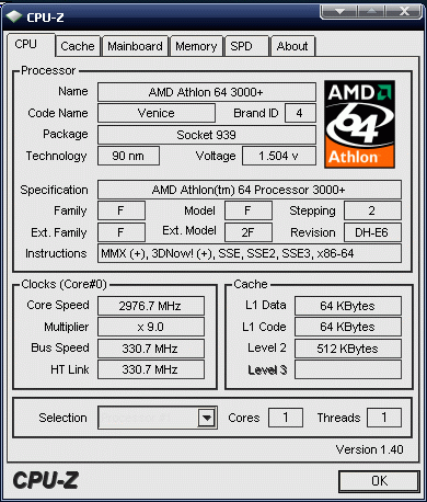 Результат разгона AMD Athlon 64 (Venice)