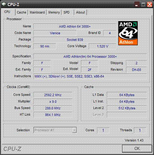 | Процессор (ядро) | AMD Athlon 64 (Venice) |