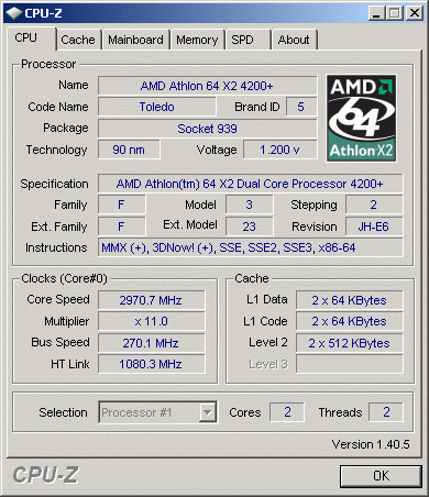 Результат разгона AMD Athlon 64 X2 (Toledo)