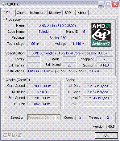 Результат разгона AMD Athlon 64 X2 (Toledo)